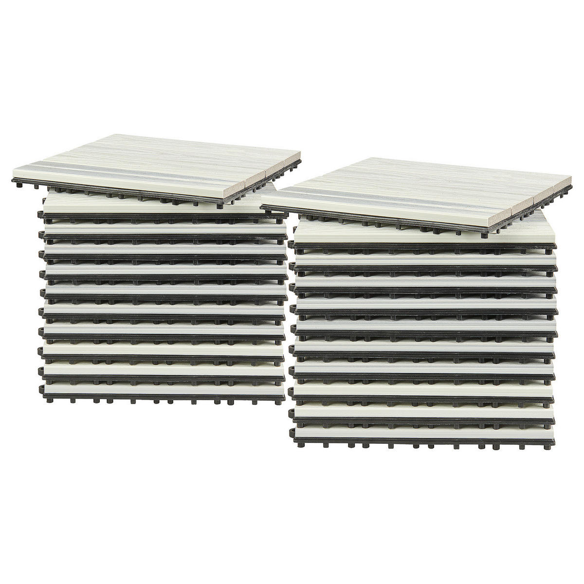 - Materialzusammensetzung Teppiche: Oberseite: Holz-Kunststoff-Gemisch (WPC), Trägergitter: Kunststoff