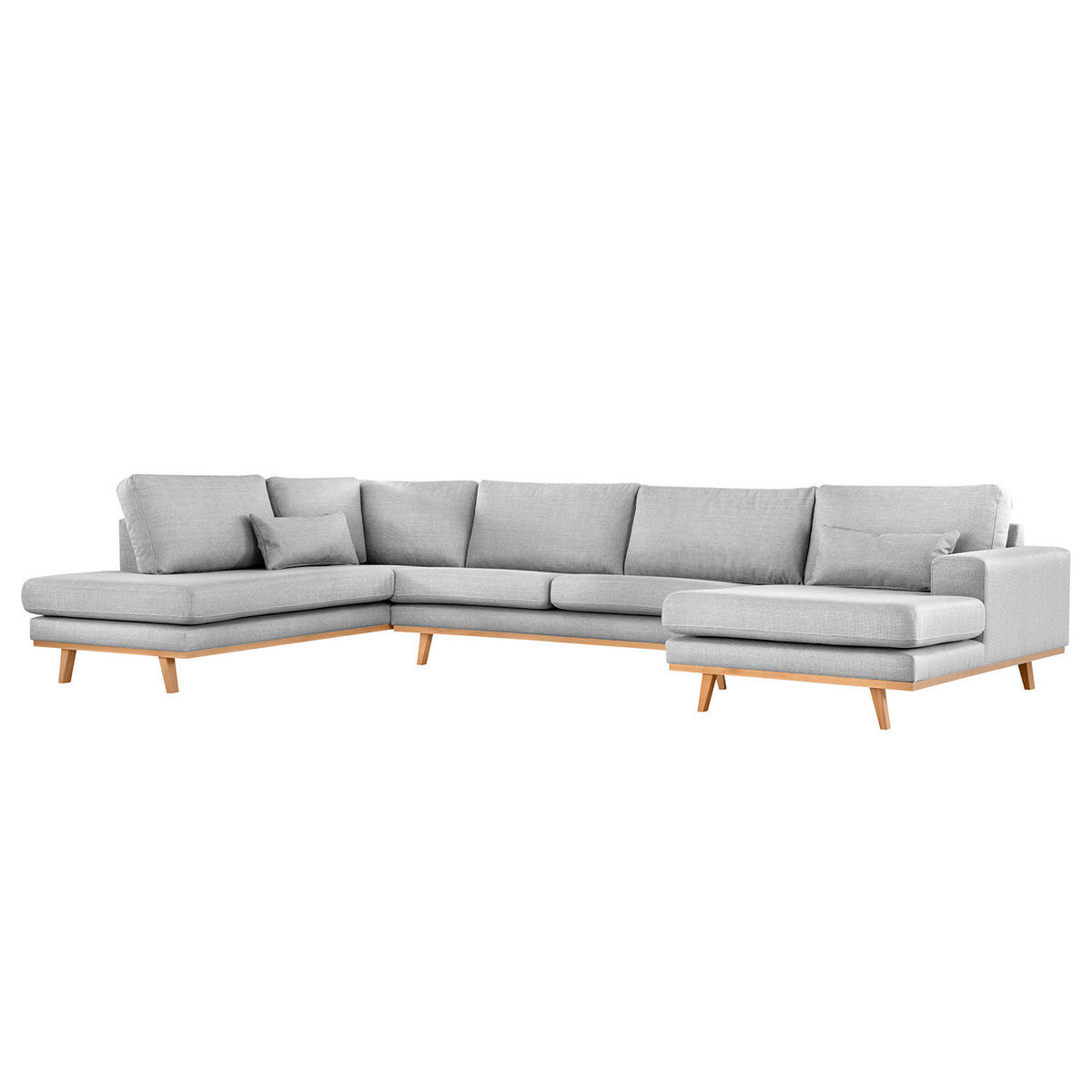 WOHNLANDSCHAFT mit Longchair - Buchefarben/Hellgrau, Holz/Buchenholz (371/81/219cm) - home24home24