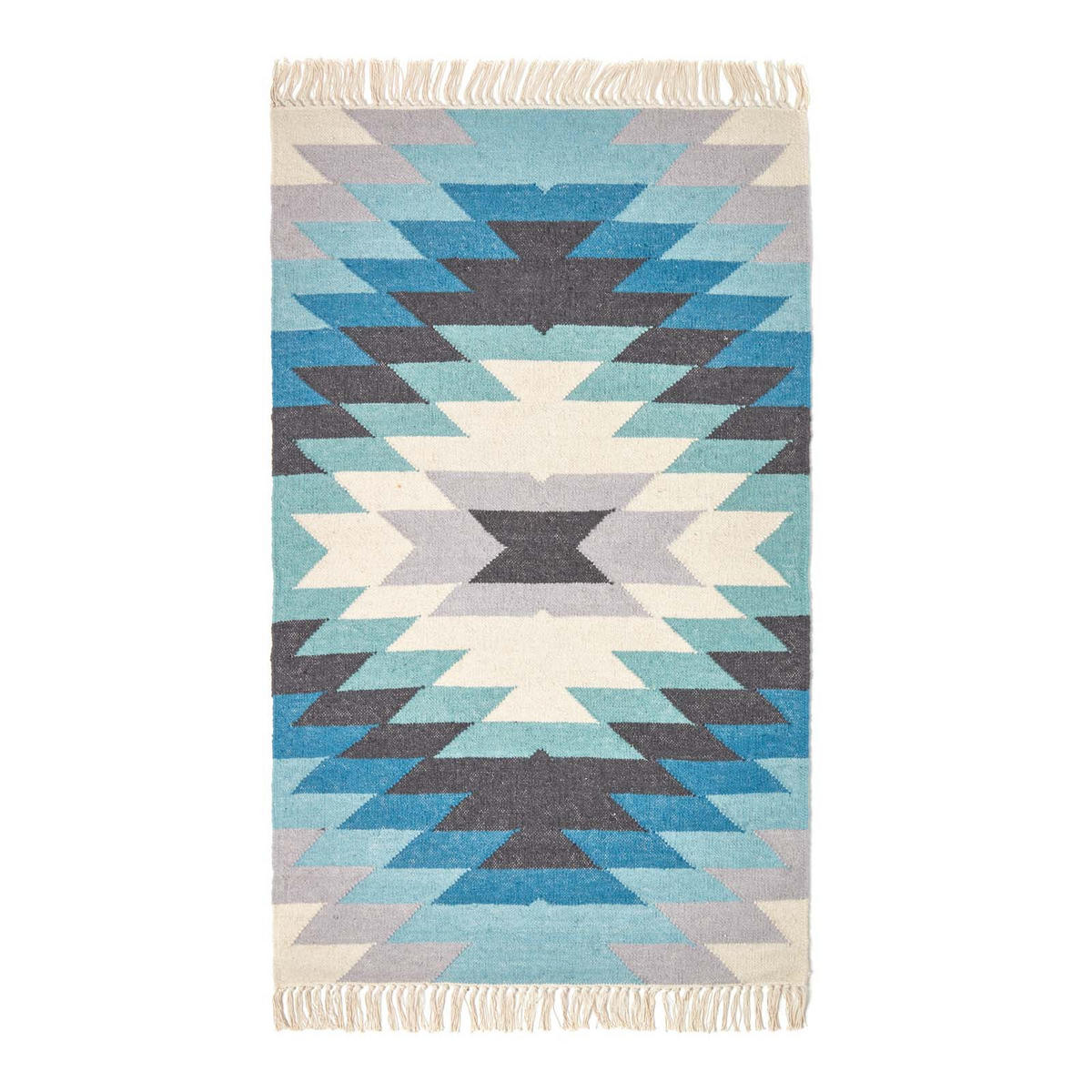 Der Flachgewebeteppich überzeugt mit einem hygge-inspirierten Look. Das einzigartige geometrische Design in zurückhaltenden Blau-, Grau- und Cremetönen fügt sich besonders gut in neutral gehaltene Einrichtungen ein und harmoniert mit vielen Wohnstilen.