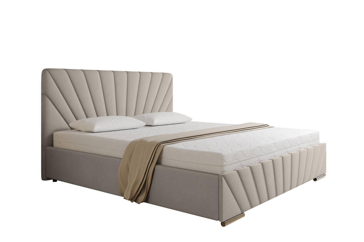 POLSTERBETT RAY – MODERNES DESIGN, KOMFORT UND FUNKTIONALITÄT Das Polsterbett RAY vereint modernes Design, hohen Komfort und praktische Funktionalität. Es ist die perfekte Wahl für alle, die Eleganz mit Alltagstauglichkeit verbinden möchten. Mit seinem einzigartigen, fächerförmig gepolsterten Kopfteil verleiht es dem Schlafzimmer einen stilvollen und luxuriösen Charakter. Die sorgfältige Verarbeitung und die weiche Stoffoberfläche sorgen für einen eleganten Look und ein angenehmes Gefühl. Technische Daten: