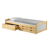...wird das neue Lieblingsstück im Zimmer Ihrer Kinder. Das helle freundliche Design in natur/weiß passt hervorragend zu bereits bestehenden Möbeln und mit einer Liegefläche von 90 x 200 cm (B x L) hat Ihr Kind genügend Platz zum Schlafen und Wohlfühlen. Damit die Unordnung aus dem Kinderzimmer verschwindet, können Sie Spielsachen, Decken und andere Kleinigkeiten in den Schubladen verstauen.