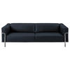echt bezogenen Rückens präsentiert die Couch selbst frei im Raum stehend rundum eine hervorragende Figur.