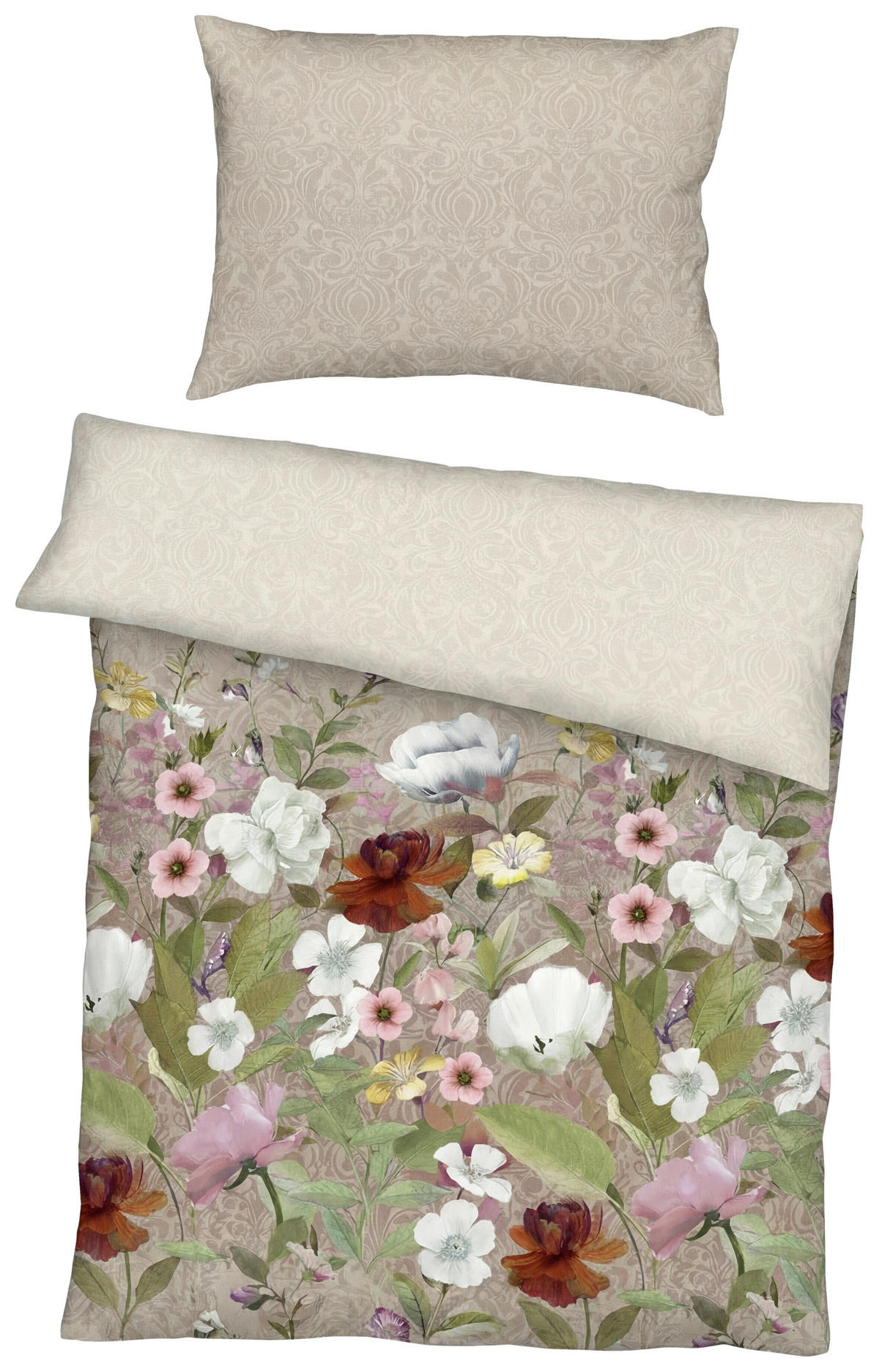 Blumen-Motiv bestimmt den Appeal des Bettwäschesets und gibt ihm eine authentische Note. Durch die unterschiedliche Vorder- und Rückseite haben Sie dank des Wendedesigns die Möglichkeit, je nach Stimmung eine andere Ansicht zu inszenieren. Einen einheitlichen Eindruck vermittelt das 2-teilige Set auf jeden Fall – ein Deckenbezug sowie eine Polsterhülle sind perfekt aufeinander abgestimmt.
