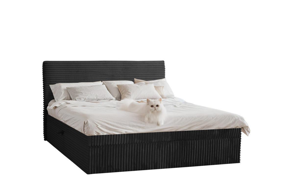 Kaiser Möbel BOXBETT Bettkasten Und Topper TRENTO Ohne Bein Stoff Plüsch Cord 200x200 cm Schwarz H2-Pocket