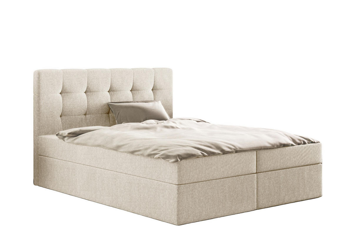 Kaiser Möbel BOXBETT Mit Matratze Und Bettkasten, LUDANO Stoff Sydney Perle 200x200 cm H2-Pocket
