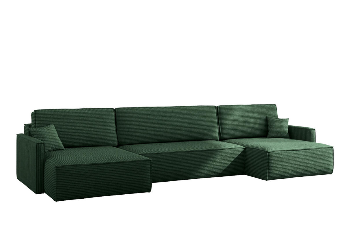 Ecksofa Carlos – Eleganz, Komfort und praktische Schlaffunktion Das Ecksofa Carlos vereint eleganten Minimalismus mit höchstem Komfort und Funktionalität. Mit klaren Linien und raffinierter Verarbeitung passt es in moderne sowie skandinavisch inspirierte Wohnräume. Die Schlaffunktion mit leicht bedienbarem Automatikmechanismus auf Basis von Wellenfedern Typ A verwandelt das Sofa in ein bequemes Doppelbett. Der integrierte Bettkasten bietet Stauraum für Decken und Kissen – ideal für Alltag und Gäste. Mit einer Sitzhöhe von 40 cm und Sitztiefe von 50 cm sowie der Füllung aus HR-Schaum T31 und Wellenfedern bietet das Sofa optimale Ergonomie. Zierkissen mit Reißverschluss und einer Silikon-/Schaummischung lassen sich individuell anpassen – für Entspannung beim Lesen, Arbeiten oder Fernsehen. Design trifft Funktionalität Die 10 cm breiten Armlehnen und filigranen Füße (2,5 cm hoch) sorgen für Leichtigkeit und moderne Ästhetik. Hochwertige Steppnähte unterstreichen die Qualität der Verarbeitung. Die flexible Platzierung des Longchairs (links oder rechts) erlaubt eine perfekte Anpassung an Ihr Raumkonzept. Technische Details