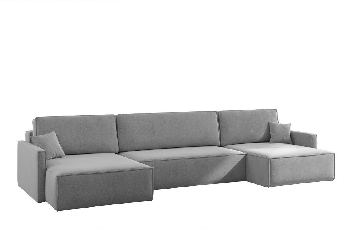 Kaiser Möbel ECKSOFA Carlos U-Form Mit Schlaffunktion Und Bettkasten Stoff Salvador Grau