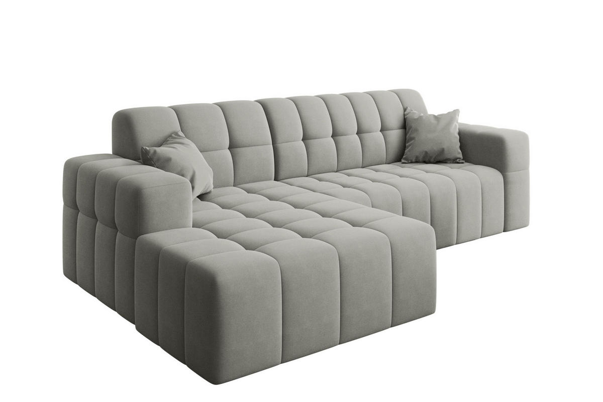 Kaiser Möbel ECKSOFA L-förmiges Nimes Velours Stoff Grau Links