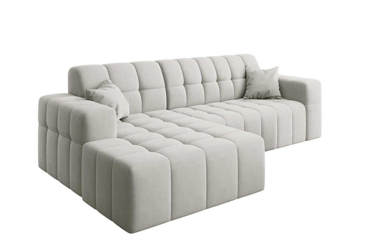 Kaiser Möbel ECKSOFA L-förmiges Nimes Velours Stoff Weiß Links