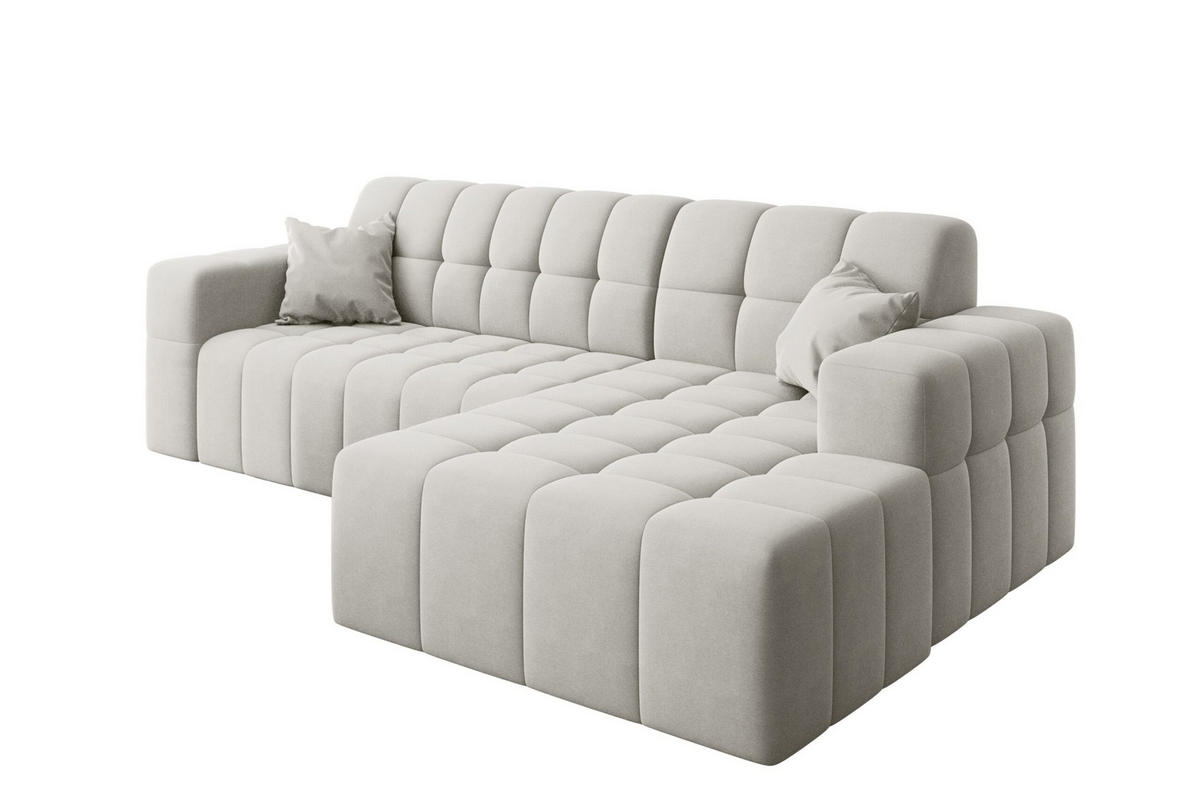 Kaiser Möbel ECKSOFA L-förmiges Nimes Velours Stoff Weiß Rechts