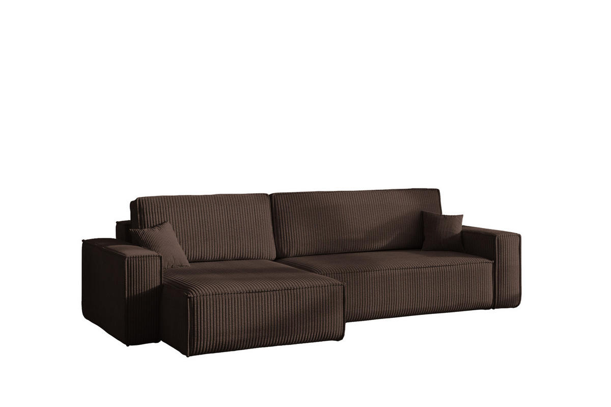Kaiser Möbel ECKSOFA Mit Schlaffunktion Und Bettkasten, Eckcouch BEST XL Stoff Poso Dicker Cord Braun Links