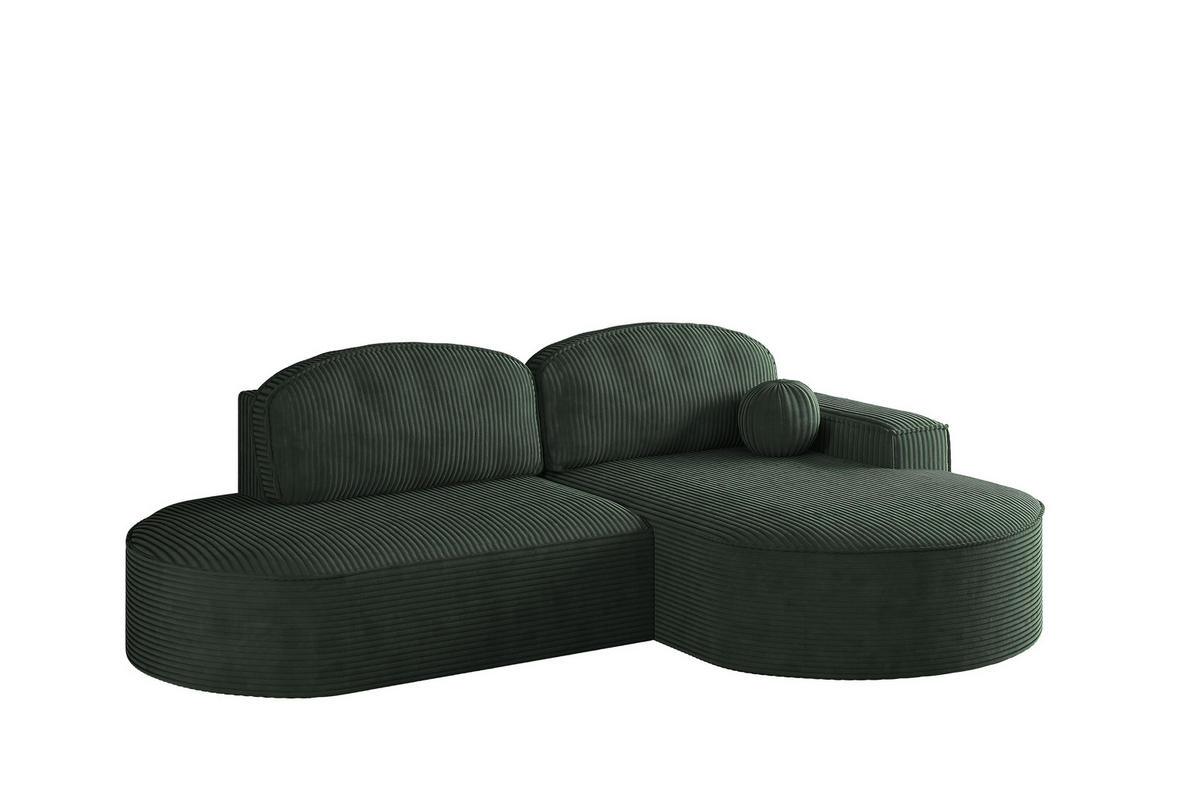Elegantes Ecksofa mit großzügiger Liegefläche, Stauraum für Bettwäsche und modernem Cord-Stoff – ideal für zeitgemäße Wohnräume.