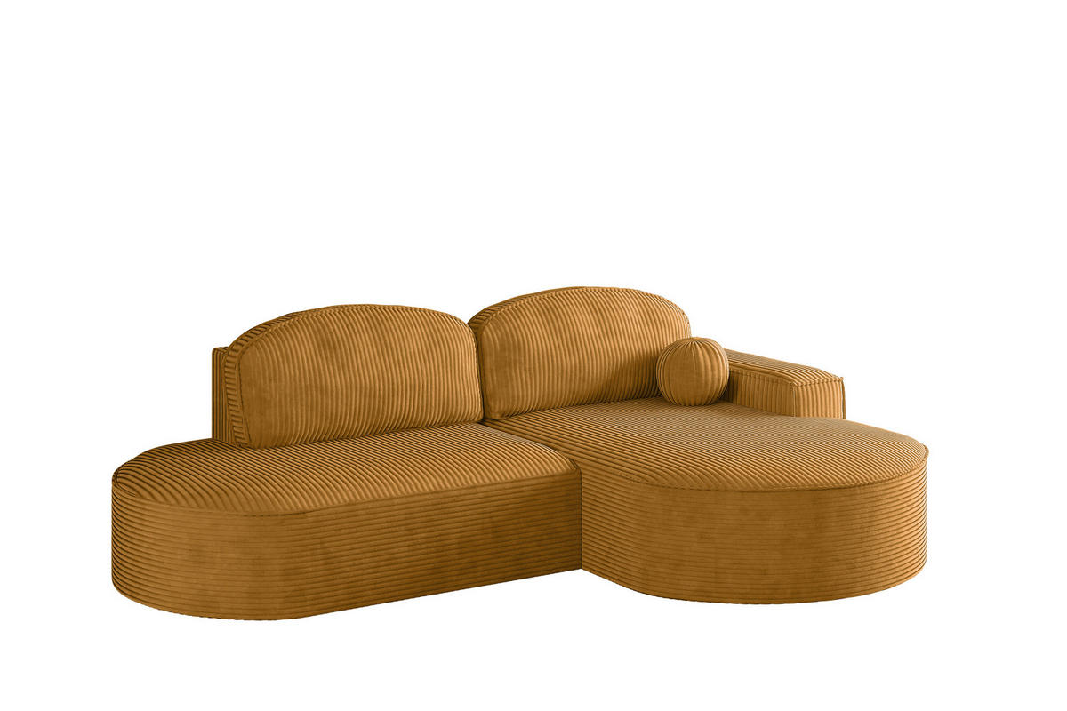 ECKSOFA mit Schlaffunktion und Bettkasten Modena Runden stoff Poso Senffarbe Rechts - Gelb, Holz/Textil (278/179cm) - Kaiser Möbel