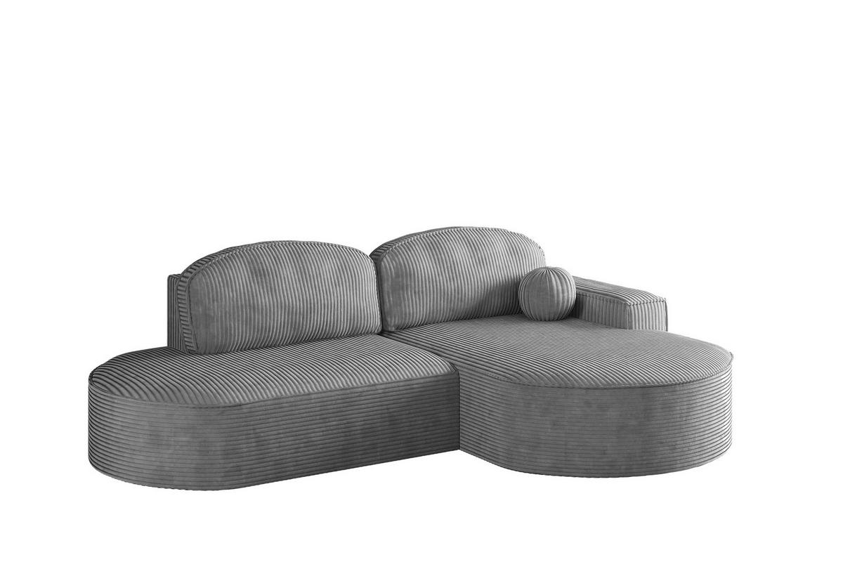 Elegantes Ecksofa mit großzügiger Liegefläche, Stauraum für Bettwäsche und modernem Cord-Stoff – ideal für zeitgemäße Wohnräume.