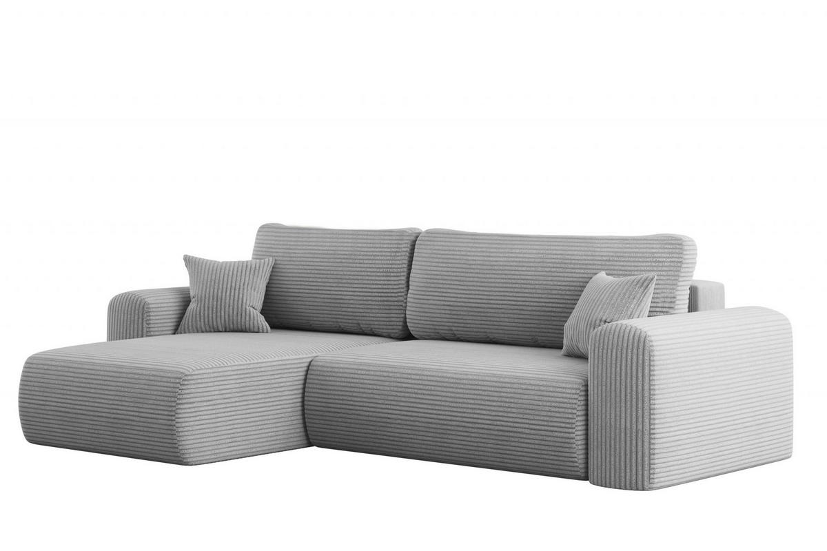 Die L-Form eignet sich ideal für Wohnzimmer, Gästezimmer oder multifunktionale Räume. Dank des DL-Systems lässt sich das Sofa mühelos in ein bequemes Bett (132×204 cm) verwandeln. Der integrierte Bettkasten bietet zusätzlichen Stauraum.