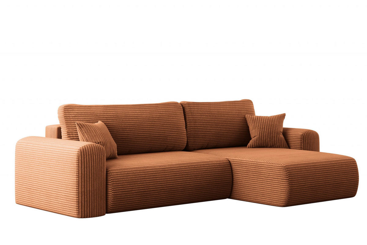 Kaiser Möbel ECKSOFA Mit Schlaffunktion und Stauraum für Bettzeug Capri Stoff Poso Ziegel Rechts