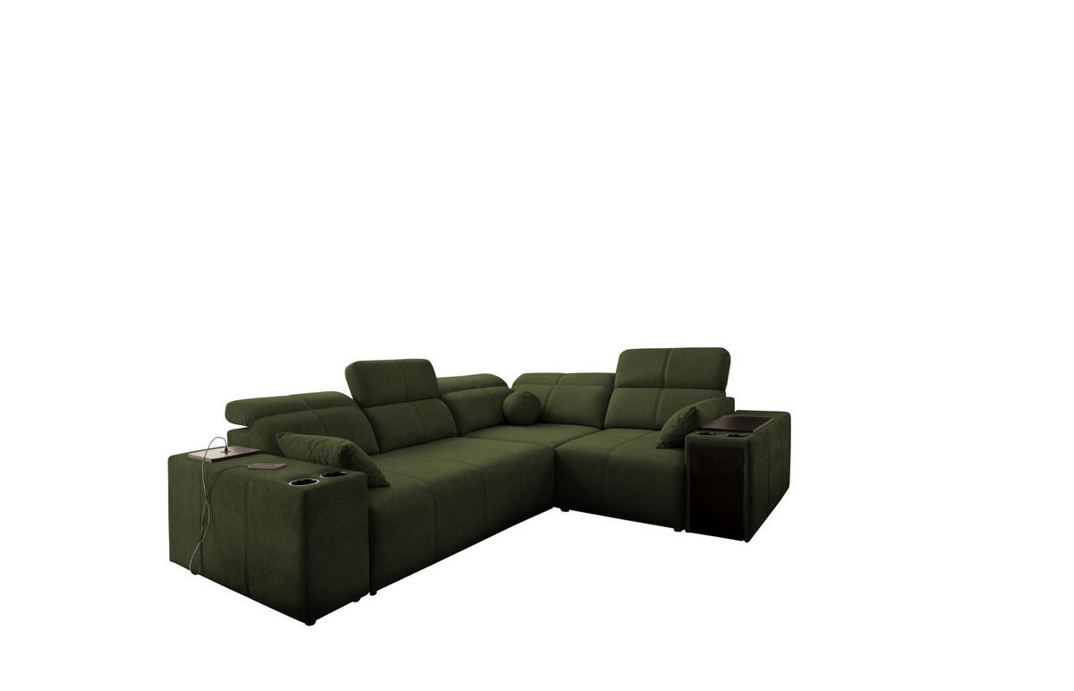 Kaiser Möbel ECKSOFA Mit Schlaffunktion USB Und Verstellbarer Rückenlehne Mindy II Dunkelgrün Rechts