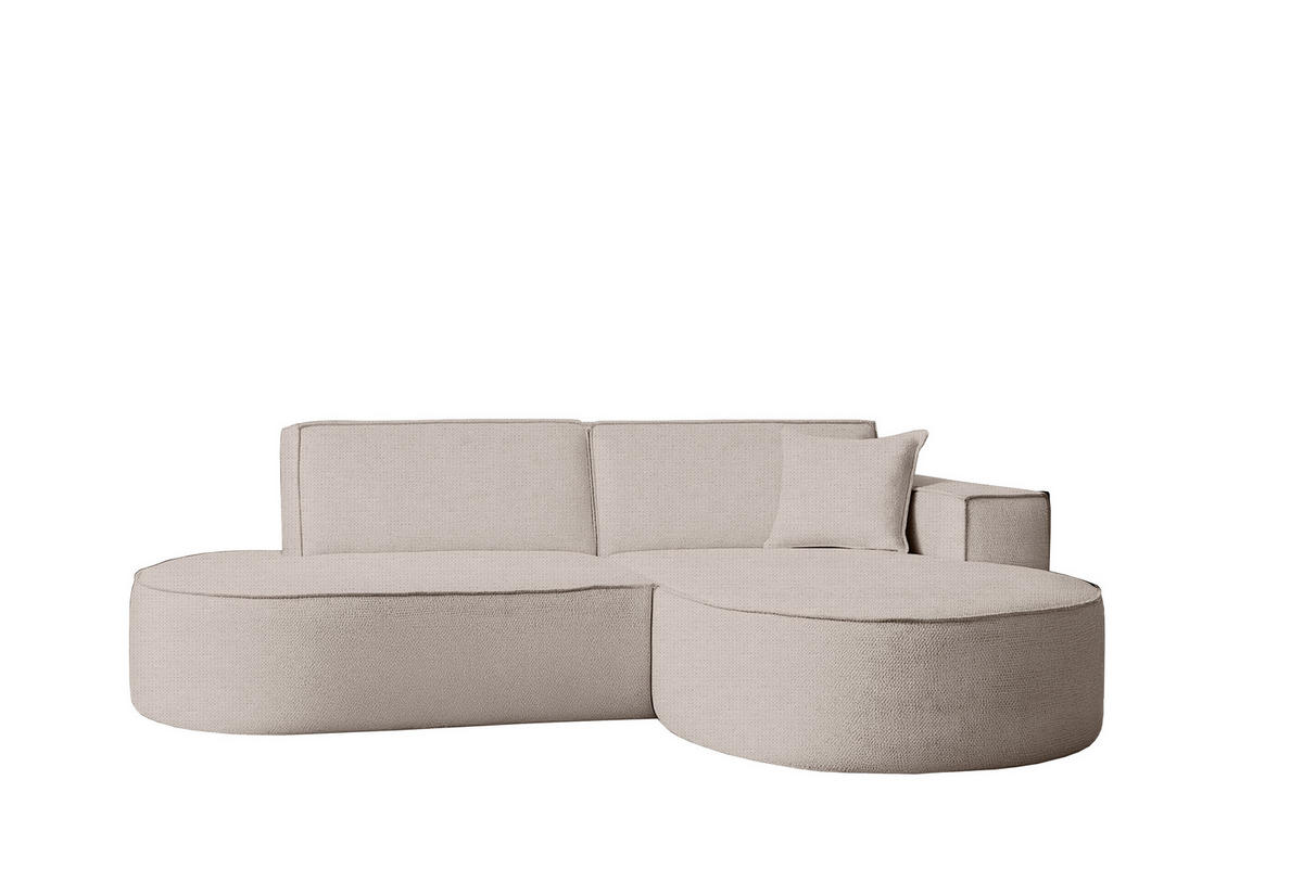 Das Modell verfügt bewusst nicht über Schlaffunktion oder Bettkasten und bleibt dadurch leicht und designorientiert. Mit seiner festen Rückenlehne bietet es optimalen Sitzkomfort im Alltag. Es ist in rechter und linker Ausführung erhältlich und lässt sich flexibel im Raum platzieren.