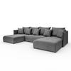 Ecksofa Hannover U – Komfort, Funktionalität und modernes Design Das Ecksofa HANNOVER U vereint modernes Design, hohe Funktionalität und außergewöhnlichen Komfort. Die großzügige U-Form lädt zum Entspannen mit Familie und Freunden ein und macht das Sofa zum Herzstück jedes Wohnzimmers. Dank der integrierten Schlaffunktion lässt sich das Sofa im Handumdrehen in ein bequemes Bett verwandeln – ideal für Gäste oder als tägliche Schlafgelegenheit. Der Bettkasten bietet zusätzlichen Stauraum für Decken oder Kissen und sorgt für Ordnung im Raum. Das Design wird durch stilvolle Steppungen und weiche Kissen abgerundet – inklusive 4 Rückenlehnenkissen und 5 Zierkissen. Die Kombination aus HR-Schaum, PUR-Granulat und Wellenfedern sorgt für optimalen Sitz- und Liegekomfort, der sich ideal an den Körper anpasst. Das DL-Faltsystem mit Automatik ermöglicht ein schnelles und müheloses Ausklappen – auch für ältere Personen einfach zu bedienen. Technische Details: