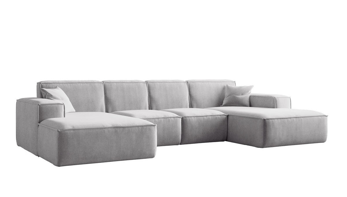 Kaiser Möbel ECKSOFA U-Form Siena, U-förmiges Ecksofa, Stoff Salvador Hellgrau