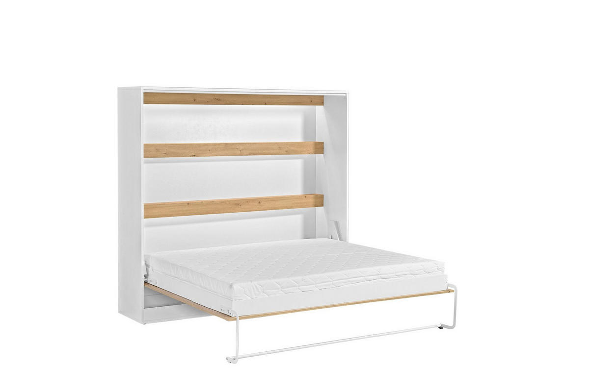 Schrankbett Perfekt ist ein modernes Klappbett, das für Menschen entwickelt wurde, die ein bequemes Bett suchen und gleichzeitig den Platz in ihrer Wohnung optimal nutzen möchten. Es ist die ideale Lösung für Einzimmerwohnungen, Jugendzimmer, Gästezimmer oder Studio-Interieurs, wo jeder Quadratmeter zählt. Dank des horizontalen Öffnungssystems nimmt Perfekt weniger Platz in der Tiefe ein als ein klassisches Bett und ähnelt im zusammengeklappten Zustand einem modernen Schrank mit eleganten Details. Es ist eine Kombination aus Komfort, Ästhetik und Funktionalität, die sich sowohl in modernen als auch in eher klassischen Einrichtungen hervorragend eignet.