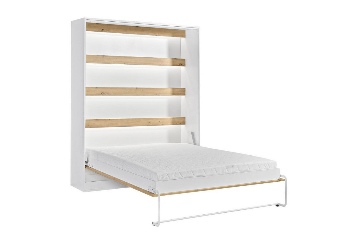 Schrankbett Perfekt ist ein modernes Klappbett, das für Menschen entwickelt wurde, die ein bequemes Bett suchen und gleichzeitig den Platz in ihrer Wohnung optimal nutzen möchten. Es ist die ideale Lösung für Einzimmerwohnungen, Jugendzimmer, Gästezimmer oder Studio-Interieurs, wo jeder Quadratmeter zählt. Dank des vertikales Öffnungssystems nimmt Perfekt weniger Platz in der Tiefe ein als ein klassisches Bett und ähnelt im zusammengeklappten Zustand einem modernen Schrank mit eleganten Details. Es ist eine Kombination aus Komfort, Ästhetik und Funktionalität, die sich sowohl in modernen als auch in eher klassischen Einrichtungen hervorragend eignet.