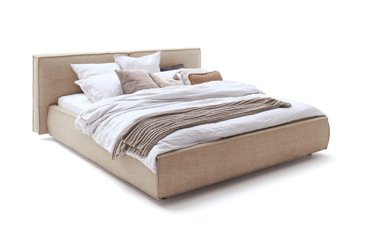 Das KAWOLA Polsterbett CARLO ist eine echte Bereicherung für jedes Schlafzimmer. Das Kopfteil sowie Fuß-und Seitenteile sind mit hochwertigem Stoff bezogen und verleihen dem Bett eine zeitlose Eleganz. Das bequeme Polster sorgt für höchsten Komfort beim Sitzen und beim Lesen. Das Bettgestell besteht aus Massivholz und Holzwerkstoffen, und die schwarzen Gleitfüße aus Kunststoff runden das stilvolle Design wunderbar ab. Das Möbelstück fügt sich so nahtlos in jedes Interieur ein und verspricht schöne Stunden in Ihrem trauten Heim. Sie werden das Polsterbett CARLO gar nicht mehr verlassen wollen!