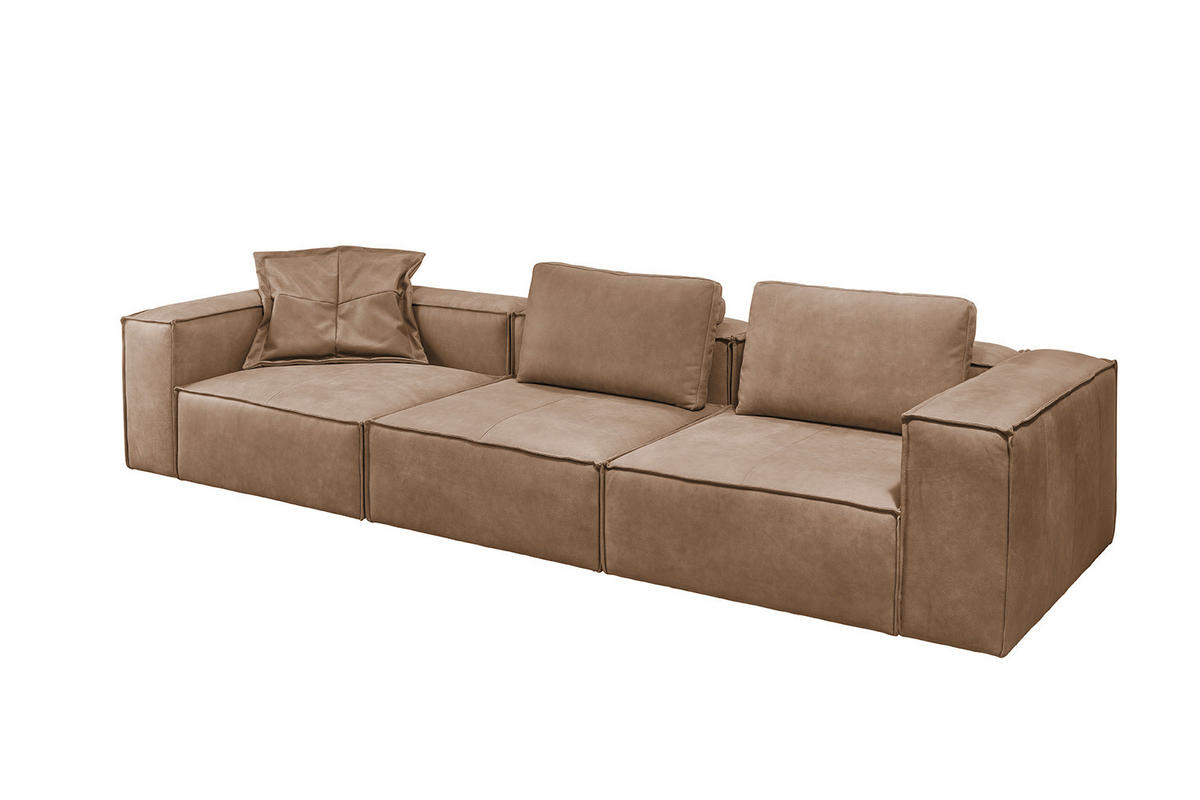 Das 4-Sitzer Sofa CARMO von KAWOLA vereint stilvolles Design mit höchstem Komfort. Der edle Bezug aus pigmentiertem Leder verleiht dem Sofa hochwertige Optik und ein angenehmes Sitzgefühl. Naturmerkmale (z.B. Narben, Insektenstiche), Struktur- und Farbabweichungen sind dabei unvermeidlich und warentypisch.