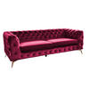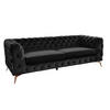 Die Rücken- sowie auch die Armlehne sind modisch versteppt und das komplette Sofa ist in einem wunderschönen samtartigen Stoff bezogen.