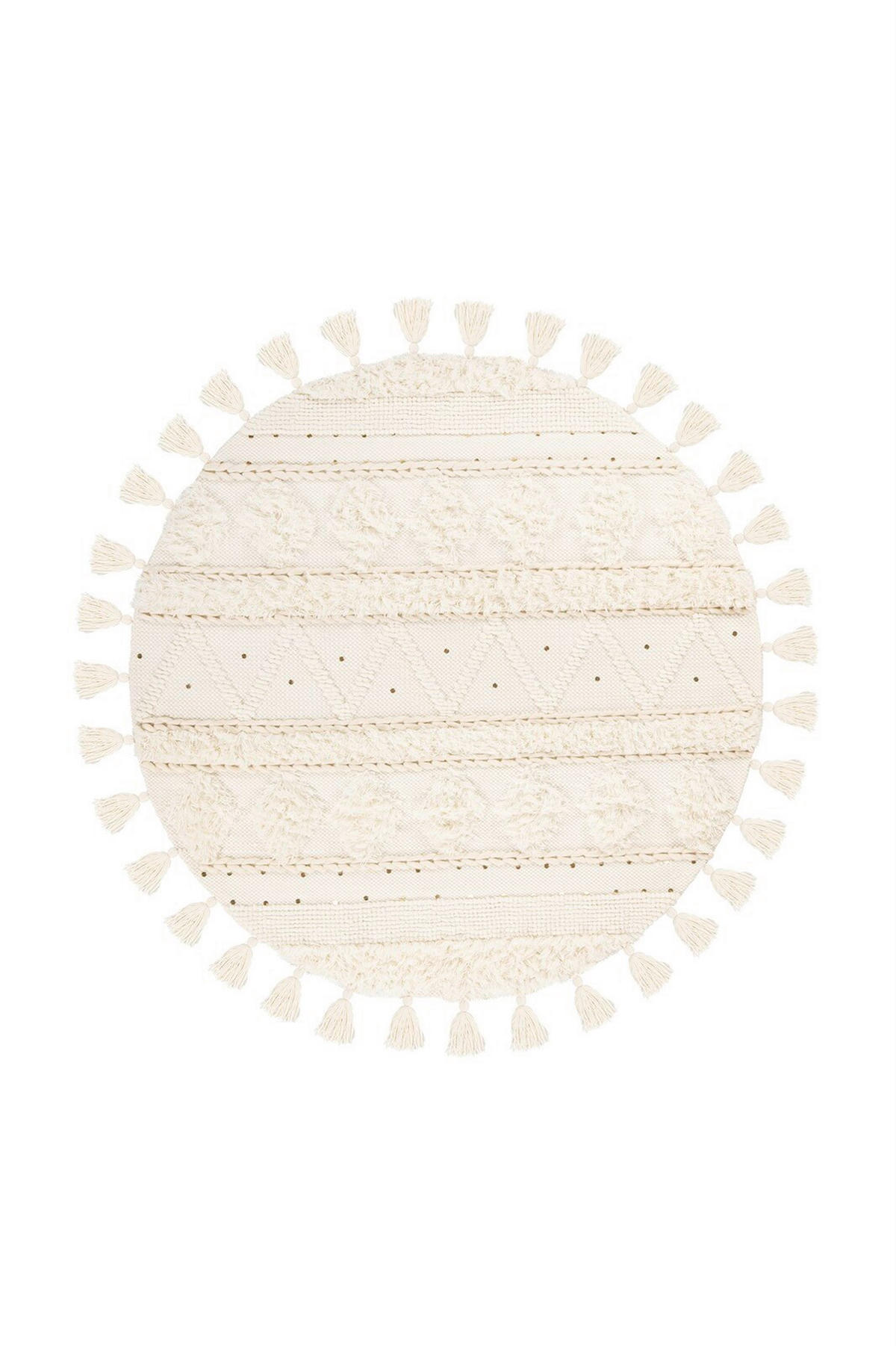 Dieser handgewebte Teppich (rund) setzt Ihr Mobiliar ca. 160 cm (Durchmesser) messend geschickt in Szene. Das Accessoire begeistert mit