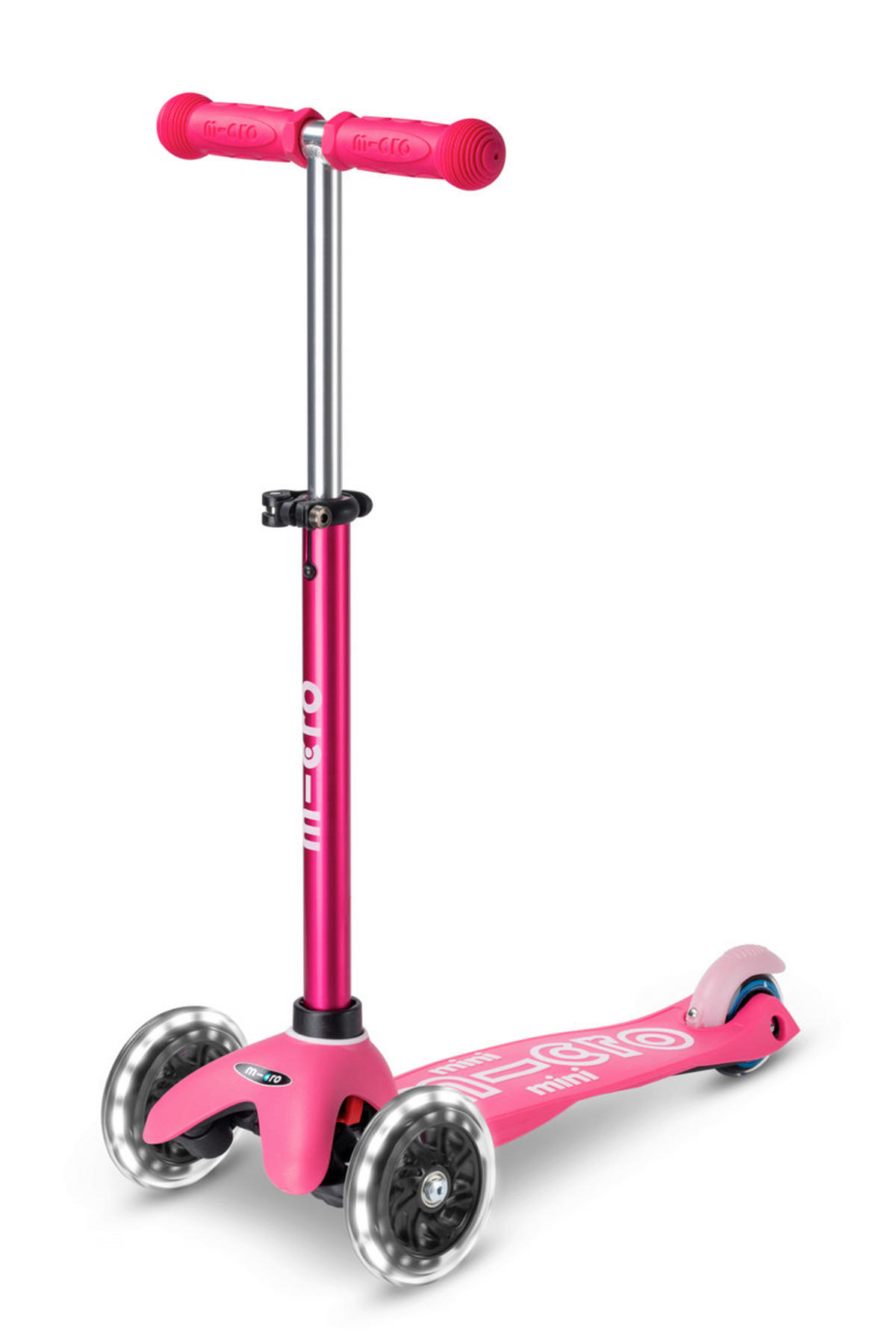 Kinderscooter "Mini Micro Deluxe LED" in Pink: Fahrspaß für quirlige Kids