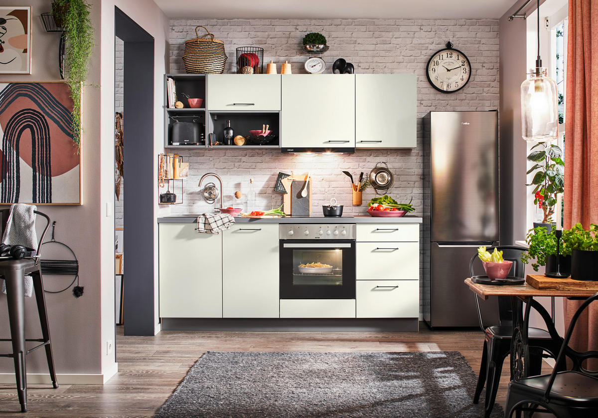 KÜCHENBLOCK 205 cm in Anthrazit, Magnolie