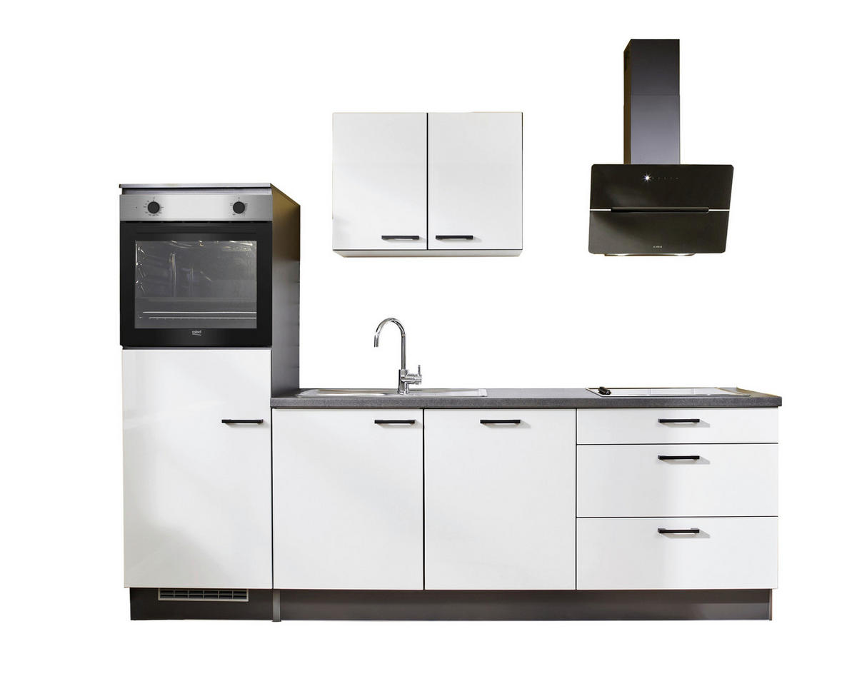 Inkludierte Elektrogeräte: Backofen, Dunstabzugshaube, Geschirrspüler, Kühlschrank mit Gefrierfach, Glaskeramikkochfeld