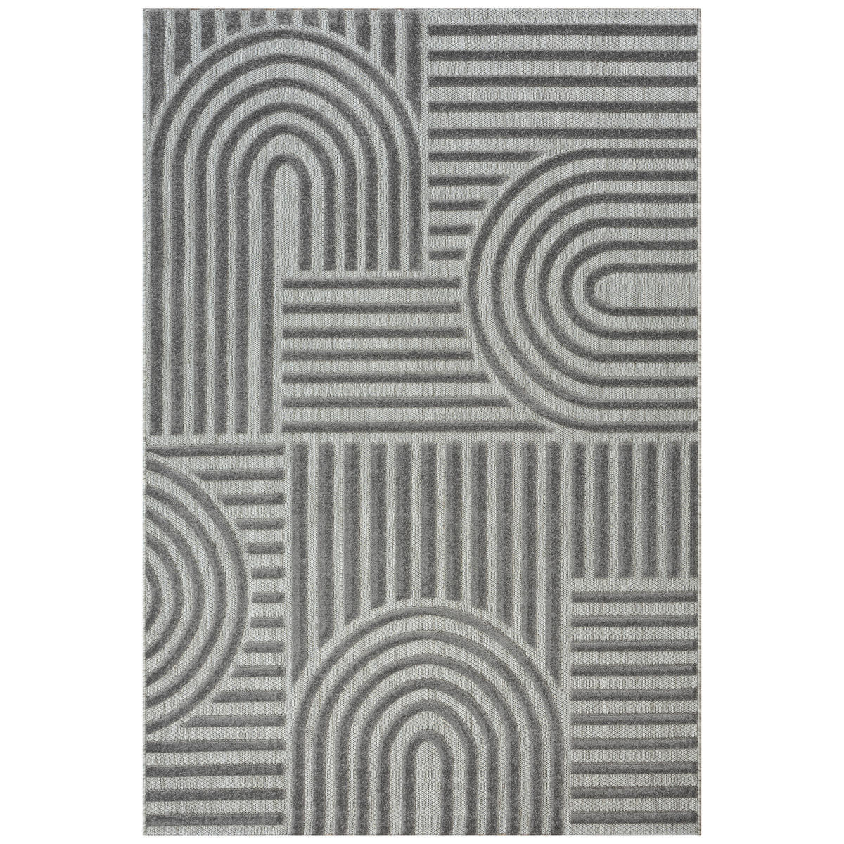 geometrische Motiv. Starke Ausstrahlung: Dieser graue Outdoorteppich (rechteckig: ca. 80 x 200 cm) entzückt mit seiner Präsenz!