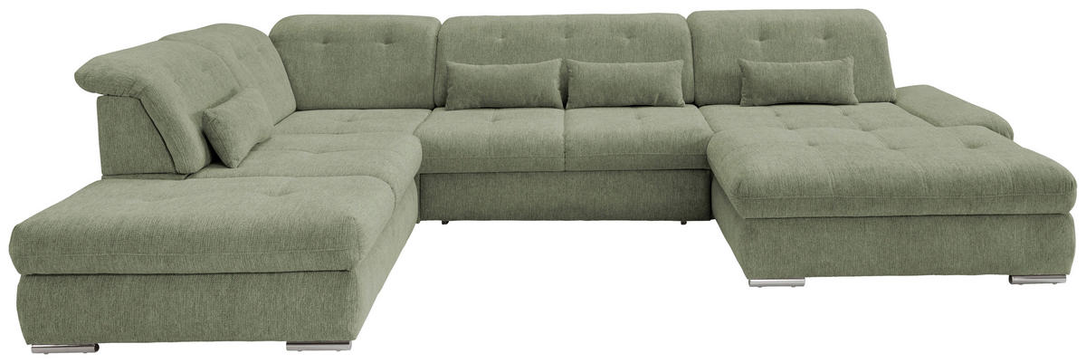 Probier’s mal mit Bequemlichkeit: Wohnlandschaft mit Chenille-Bezug in Grün