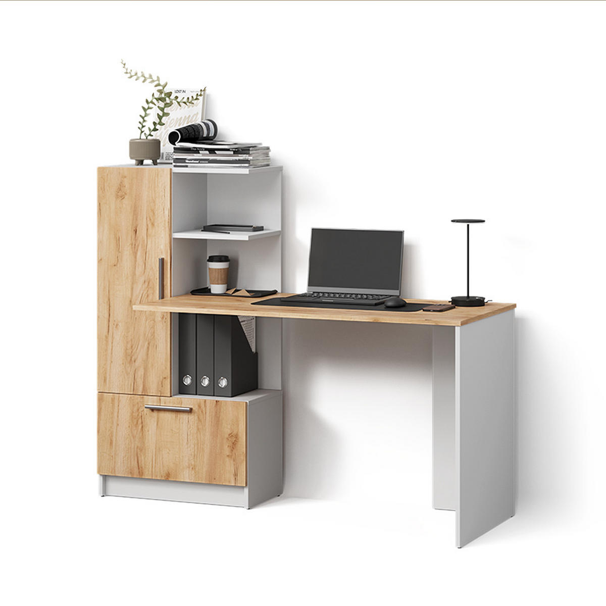 Livinity® SCHREIBTISCH Lorena Weiß/Goldkraft Eiche 150 x 120.1 cm mit 2 Türen
