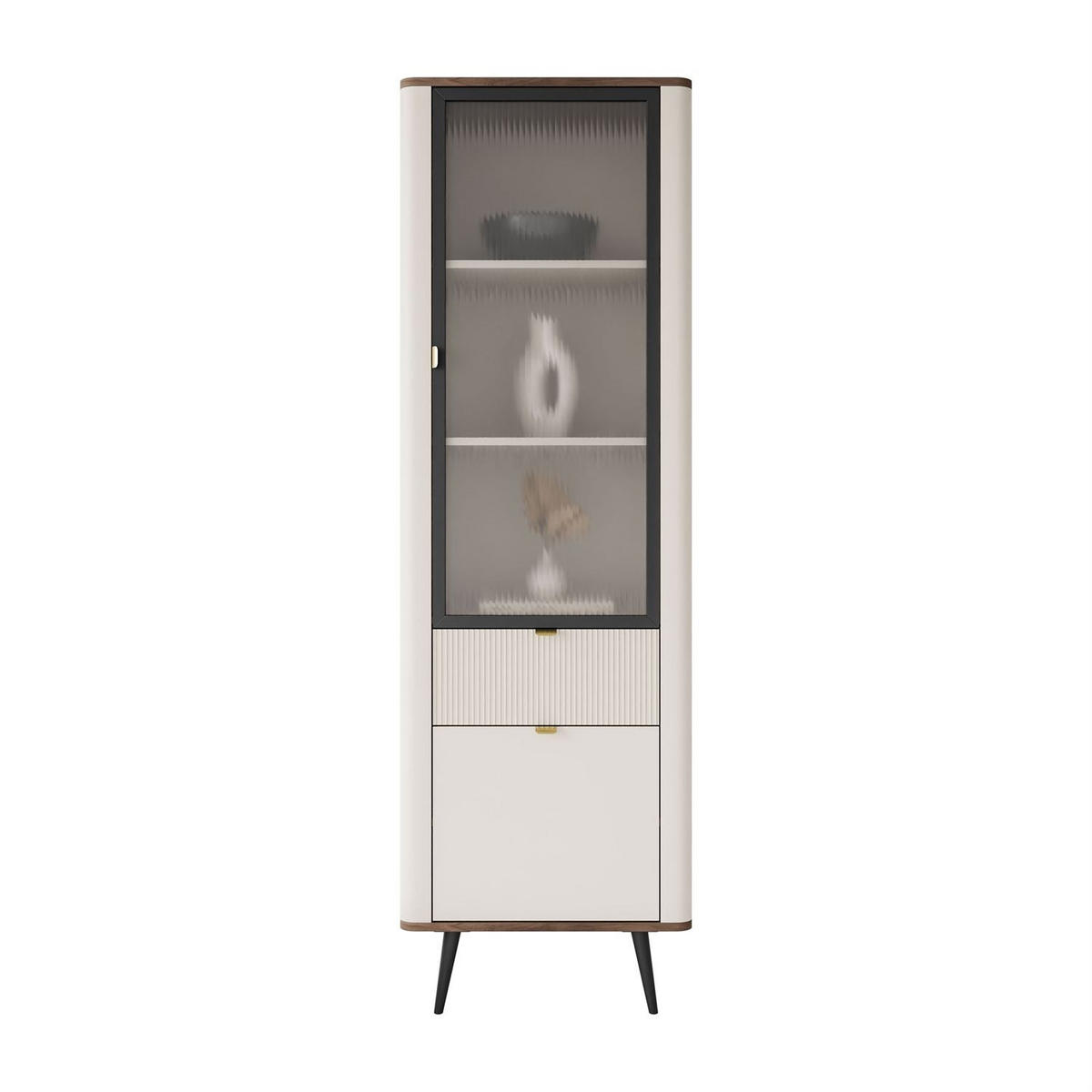 Lookway VITRINE schmal AUTUMN 1D1S1W mit Schublade, Kaschmir / Nussbaum