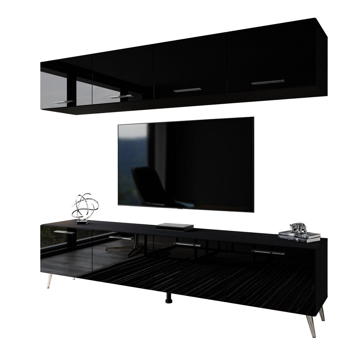Lookway WOHNWÄNDE AURA mit Griffen Schwarz Hochglanz mit LED-Beleuchtung – Füße in Chrom
