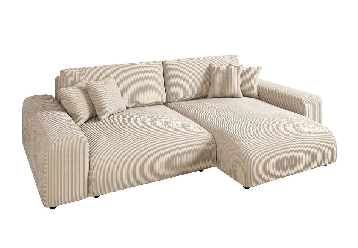 luma-home ECKSOFA mit Schlaffunktion, Bettkasten, Wellenunterfederung, seitenverkehrt montierbar B255/T165/H84 cm, Liegefl. 148x196 cm, Cord Beige / 21001