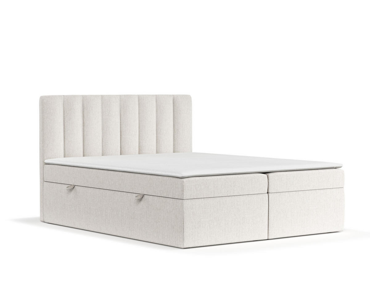 Das Kopfteil des klassischen NOVENTO-Bettes ist durchgehend mit stilvollen vertikalen Nähten verziert, die einen dezenten, aber eleganten Akzent setzen. Die Dicke des Schaums in der Rückenlehne beträgt 3 cm und bietet genau die richtige Menge an bequemer Unterstützung.