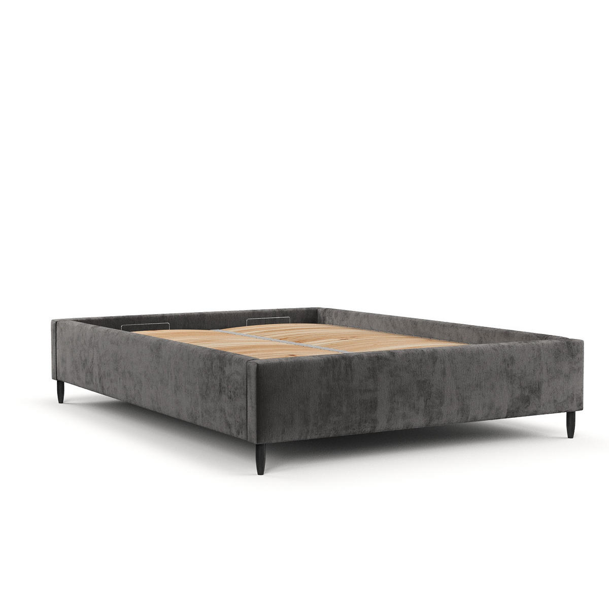 Die schwarzen Holzbeine verleihen dem Bett einen leichten und modernen Touch. Sie sind auch hoch genug, damit der Staubsauger sie erreichen kann und sorgen für Sauberkeit an schwer zugänglichen Stellen!