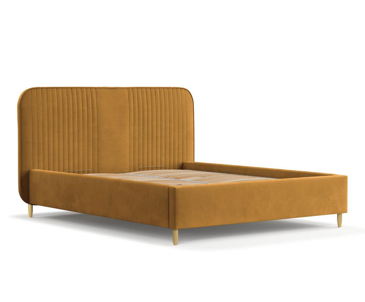 Dieses stilvolle Polsterbett zeichnet sich durch sein breites, abgerundetes Kopfteil aus, das mit zwei Bahnen mit vertikalen Nähten verziert ist, die ihm einen einzigartigen Charakter verleihen. Solche Details machen LIVY nicht nur zu einem bequemen, sondern auch zu einem auffälligen Möbelstück.