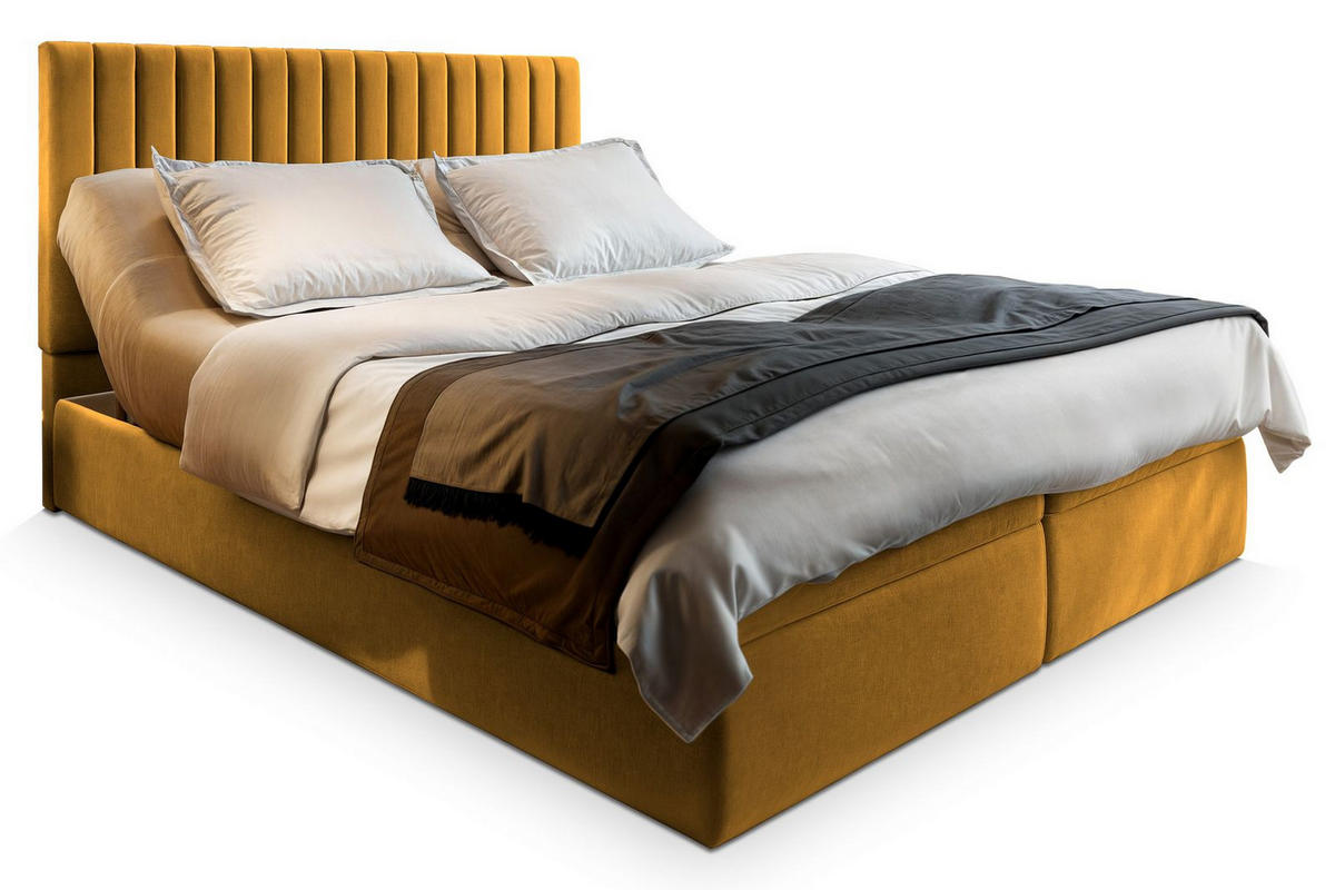 Stil und Luxus. Wichtige Merkmale des Bettes MURLO: - Großer Bettkasten - Der praktische Bettkasten mit großem Fassungsvermögen bietet Platz für Bettdecken, Kissen oder andere Textilien und hilft, Ordnung im Schlafzimmer zu halten. Dank des leicht zu bedienenden Mechanismus ist der Zugriff auf die aufbewahrten Gegenstände schnell und bequem.