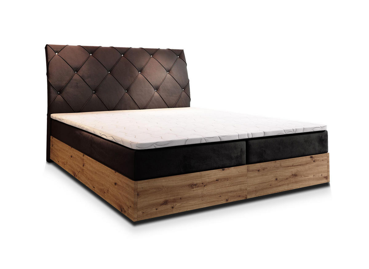 Das Kontinentalbett VELLANO ist die ideale Lösung für alle, die nach einer Harmonie zwischen Funktionalität, Ästhetik und Komfort suchen. Mit größter Sorgfalt entworfen, passt es sowohl in klassische als auch in moderne Innenräume und verleiht Ihrem Schlafzimmer einen einzigartigen Stil und Luxus. Wichtige Merkmale des Bettes VELLANO: Großer Bettkasten Der praktische Bettkasten mit großem Fassungsvermögen bietet Platz für Bettdecken, Kissen oder andere Textilien und hilft, Ordnung im Schlafzimmer zu halten. Dank des leicht zu bedienenden Mechanismus ist der Zugriff auf die aufbewahrten Gegenstände schnell und bequem. Ergonomischer Schlafkomfort Das Kontinentalbett wurde mit dem Ziel entwickelt, maximalen Komfort und Unterstützung für den Körper zu bieten. Die Matratze mit der richtigen Härte sorgt für eine perfekte Unterstützung und eine korrekte Ausrichtung der Wirbelsäule während des Schlafs. Die solide Konstruktion gewährleistet Langlebigkeit und Stabilität, sodass jede Nacht nicht nur bequem, sondern auch vollständig erholsam ist. Zusätzlicher Komfort dank Topper Das Kontinentalbett VELLANO ist mit einem praktischen Topper ausgestattet, der den Schlafkomfort erheblich verbessert. Durch den Topper wird die Liegefläche noch weicher und angenehmer, was den Schlaf besonders entspannend macht.
