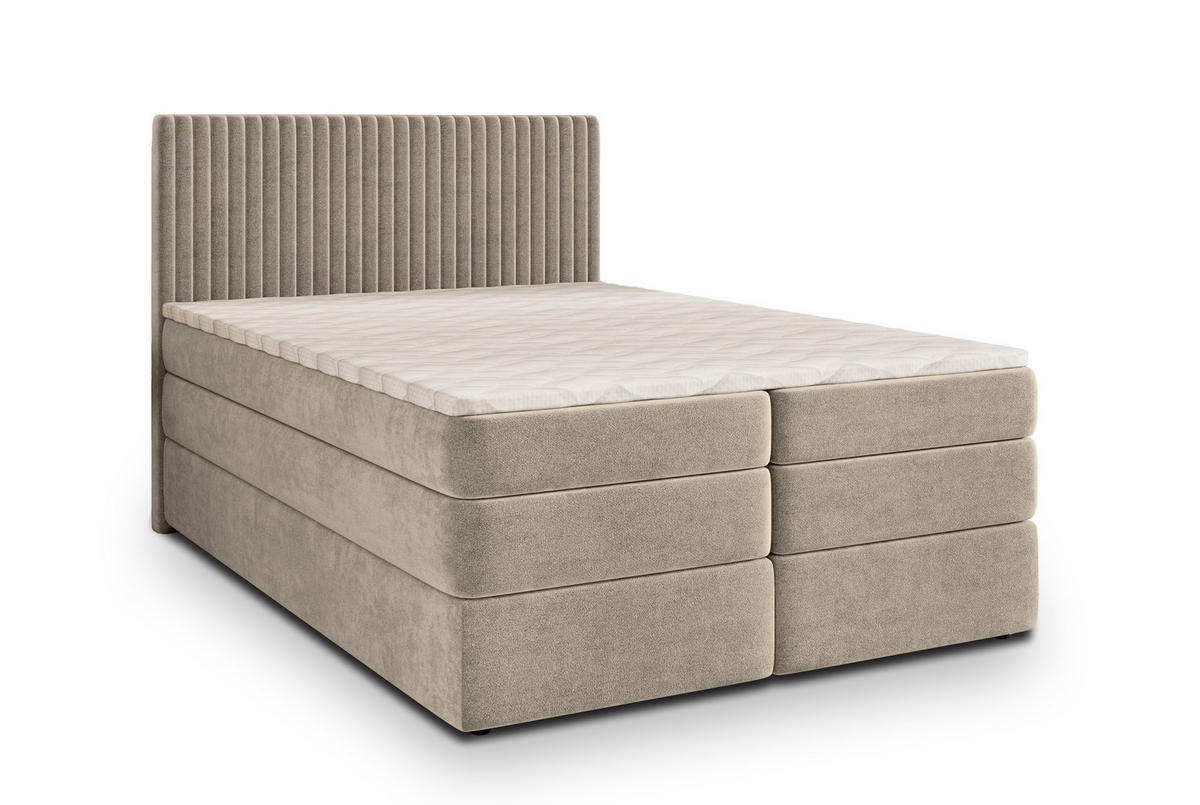 Das Boxspringbett FELBIO ist die ideale Lösung für alle, die nach einer Harmonie zwischen Funktionalität, Ästhetik und Komfort suchen. Mit größter Sorgfalt entworfen, passt es sowohl in klassische als auch in moderne Innenräume und verleiht Ihrem Schlafzimmer einen einzigartigen Stil und Luxus. Wichtige Merkmale des Bettes FELBIO: Großer Bettkasten Der praktische Bettkasten mit großem Fassungsvermögen bietet Platz für Bettdecken, Kissen oder andere Textilien und hilft, Ordnung im Schlafzimmer zu halten. Dank des leicht zu bedienenden Mechanismus ist der Zugriff auf die aufbewahrten Gegenstände schnell und bequem. Ergonomischer Schlafkomfort Das Boxspringbett wurde mit dem Ziel entworfen, maximalen Komfort und optimale Unterstützung für den Körper zu bieten. Es verfügt über eine Doppelschicht-Matratze mit dem universellsten Härtegrad. Die mit der Basis verbundene Bonellfederkernmatratze sowie eine zusätzliche Taschenfederkernmatratze sorgen für Stabilität, erhöhten Komfort und perfekte Unterstützung in jeder Körperzone. Diese ideale Kombination ermöglicht eine korrekte Ausrichtung der Wirbelsäule während des Schlafs und unvergleichlichen Liegekomfort. Die solide Konstruktion gewährleistet Langlebigkeit und Stabilität, sodass jede Nacht nicht nur bequem, sondern auch vollkommen erholsam ist. Zusätzlicher Komfort dank Topper Das Boxspringbett FELBIO ist mit einem praktischen Topper ausgestattet, der den Schlafkomfort erheblich verbessert. Durch den Topper wird die Liegefläche noch weicher und angenehmer, was den Schlaf besonders entspannend macht.