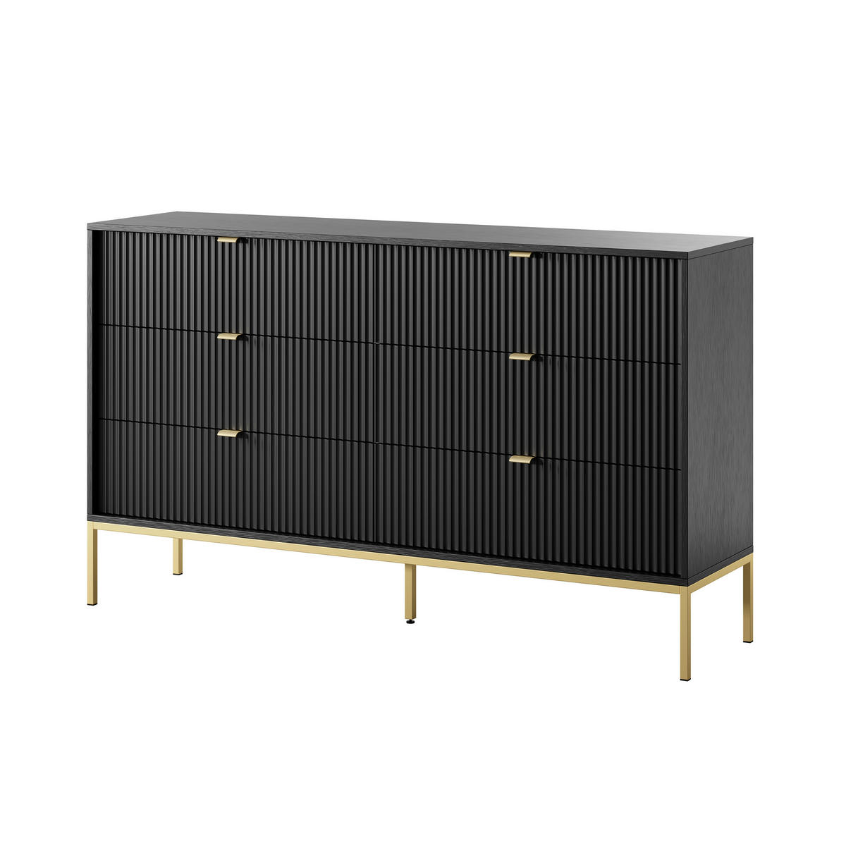 MASSENO SIDEBOARD STELLARE 154/91/39 cm mit 6 Schubladen Schwarz