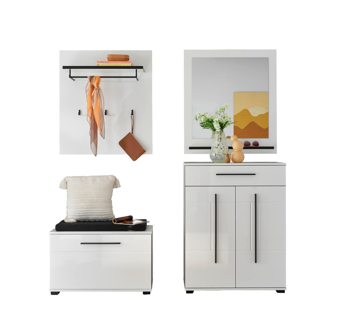 GARDEROBE 5-teilig  in 170/200/39 cm  - Weiß Hochglanz/Weiß, MODERN, Holzwerkstoff (170/200/39cm) - MID.YOU