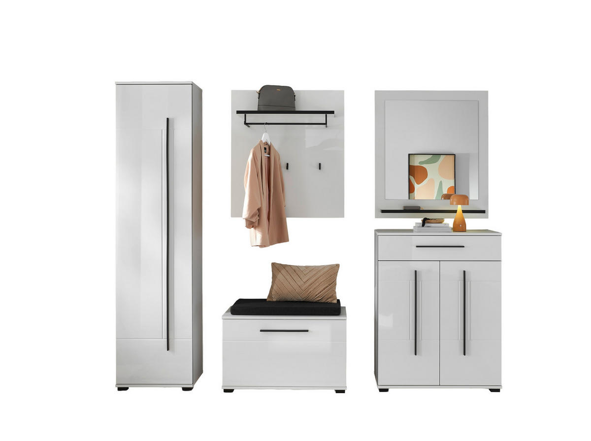 GARDEROBE 6-teilig  in 230/201/39 cm  - Weiß Hochglanz/Weiß, MODERN, Holzwerkstoff (230/201/39cm) - MID.YOUMID.YOU