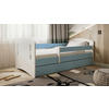 Schubladen ergänzen eine praktische Aufbewahrungslösung für alle Spielsachen, Accessoires und Co., die griffbereit untergebracht werden wollen. Aus müde wird wundervoll – Nacht für Nacht in diesem Kinder- und Juniorbett (ca. 80 x 160 cm) in Weiß inklusive Bettkasten, Matratze, Lattenrost und Holz-Kopfteil!