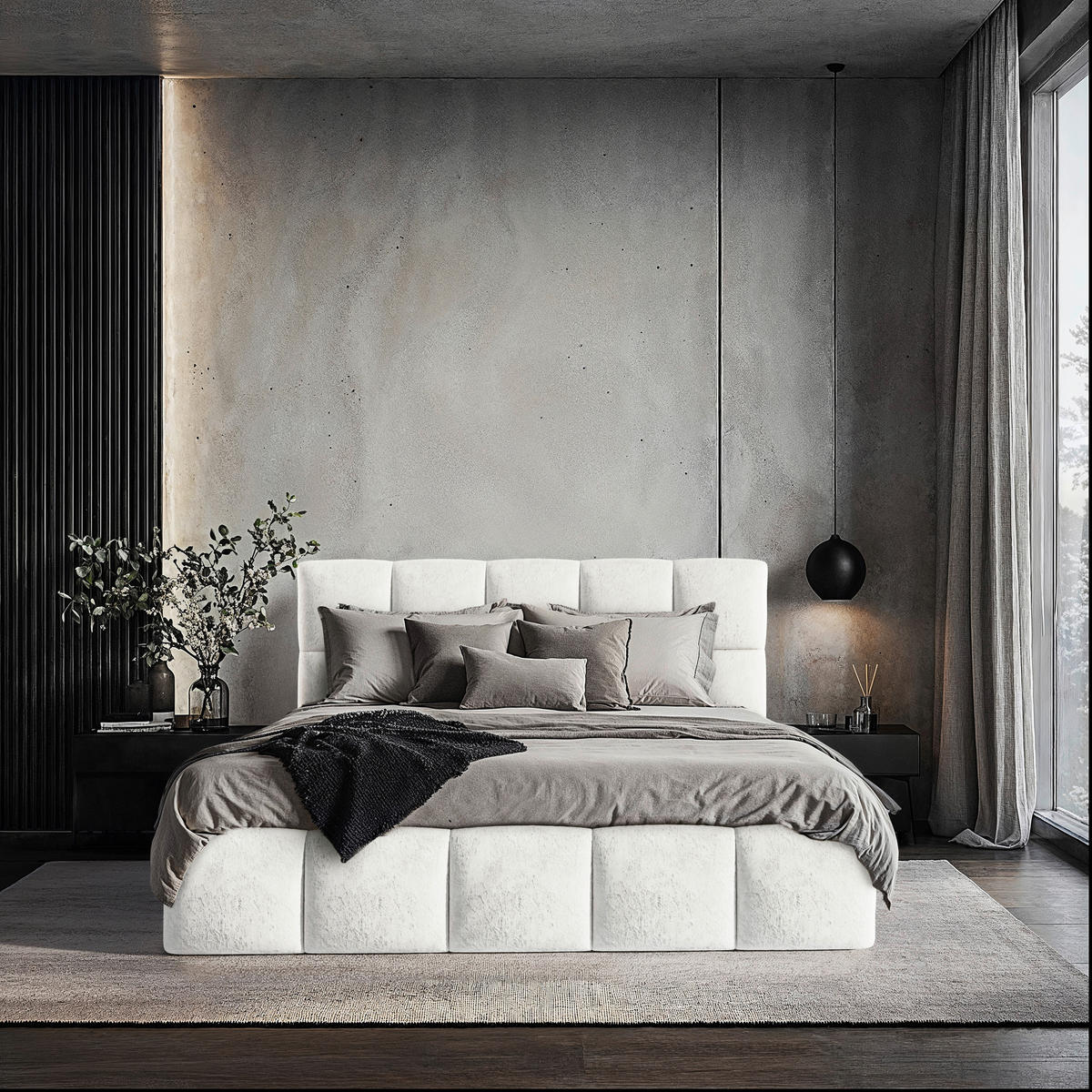 Bettkasten ist eine praktische Ergänzung für mehr Struktur und Ordnung in den eigenen vier Wänden. Machen Sie jede Nacht zur besten Zeit des Tages mit diesem Polsterbett (ca. 160 x 200 cm) in Weiß inklusive Bettkasten, Lattenrost und gepolstertem Kopfteil!